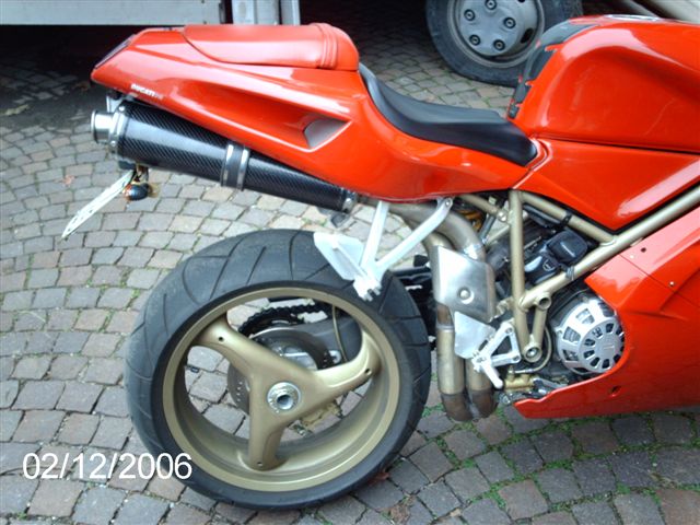 Sistema di scarico omologato con stampigliatura laser sul terminale, DB Killer e certificato cartaceo di omologazione.