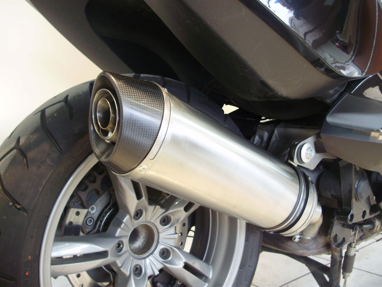 Sistema di scarico omologato con stampigliatura laser sul terminale, DB Killer e certificato cartaceo di omologazione.