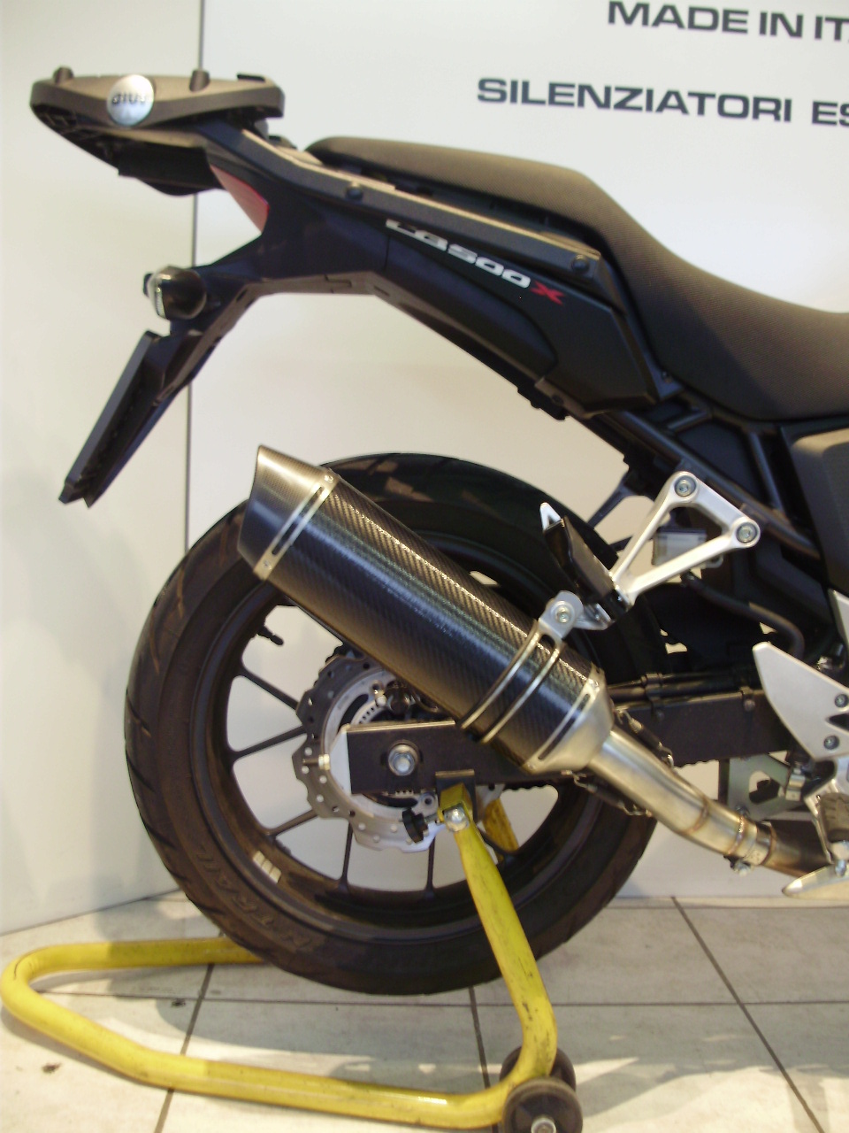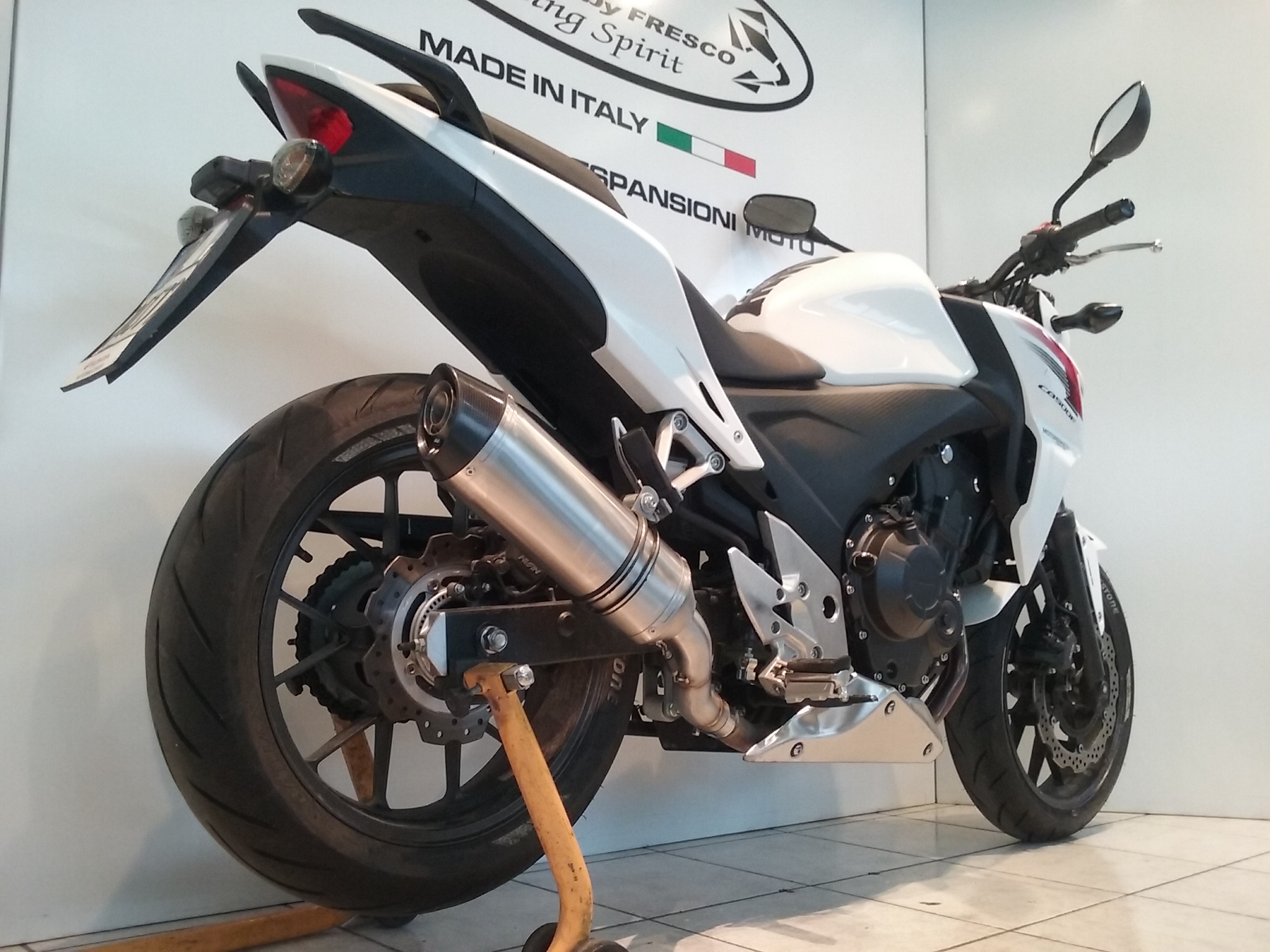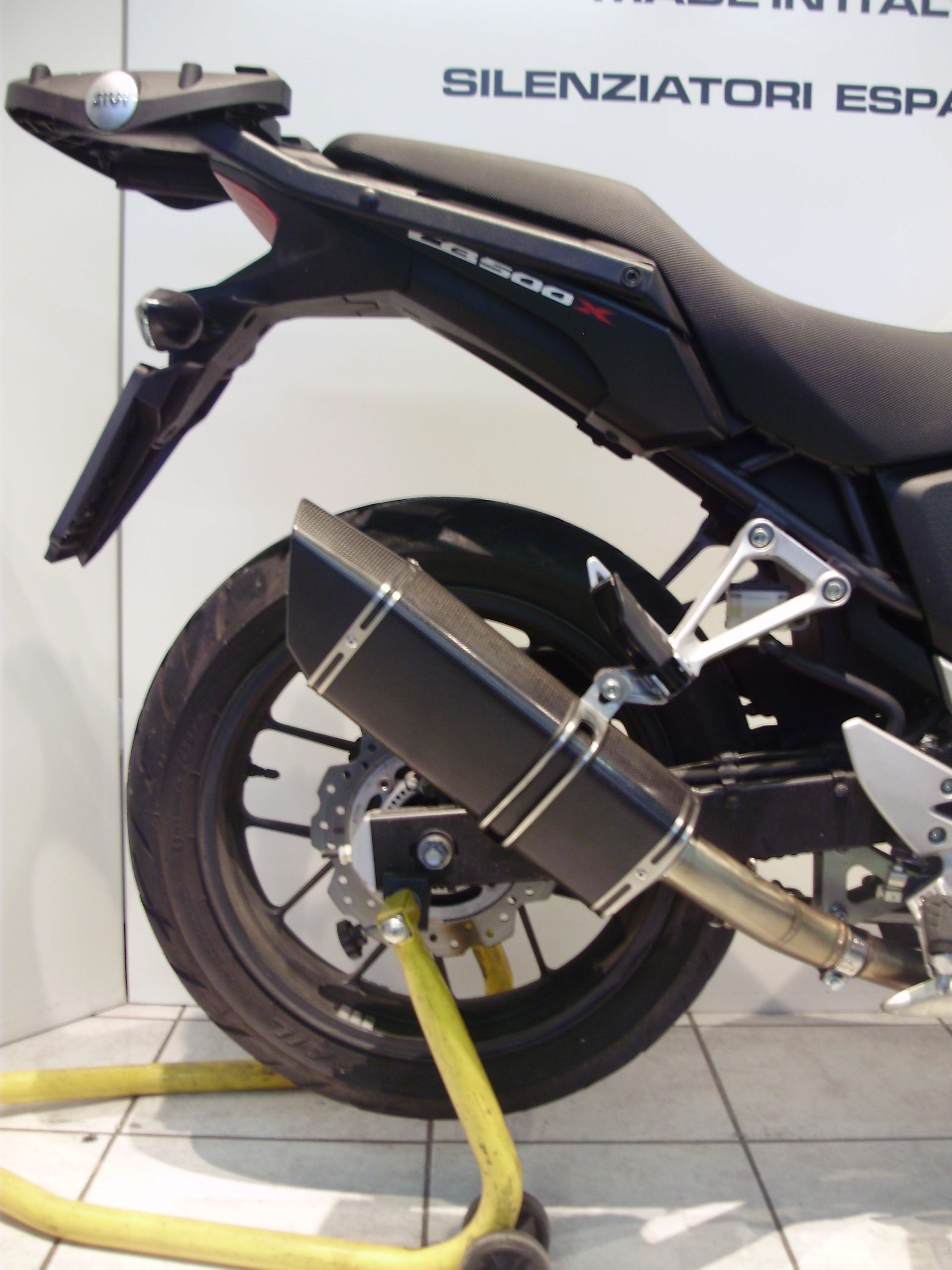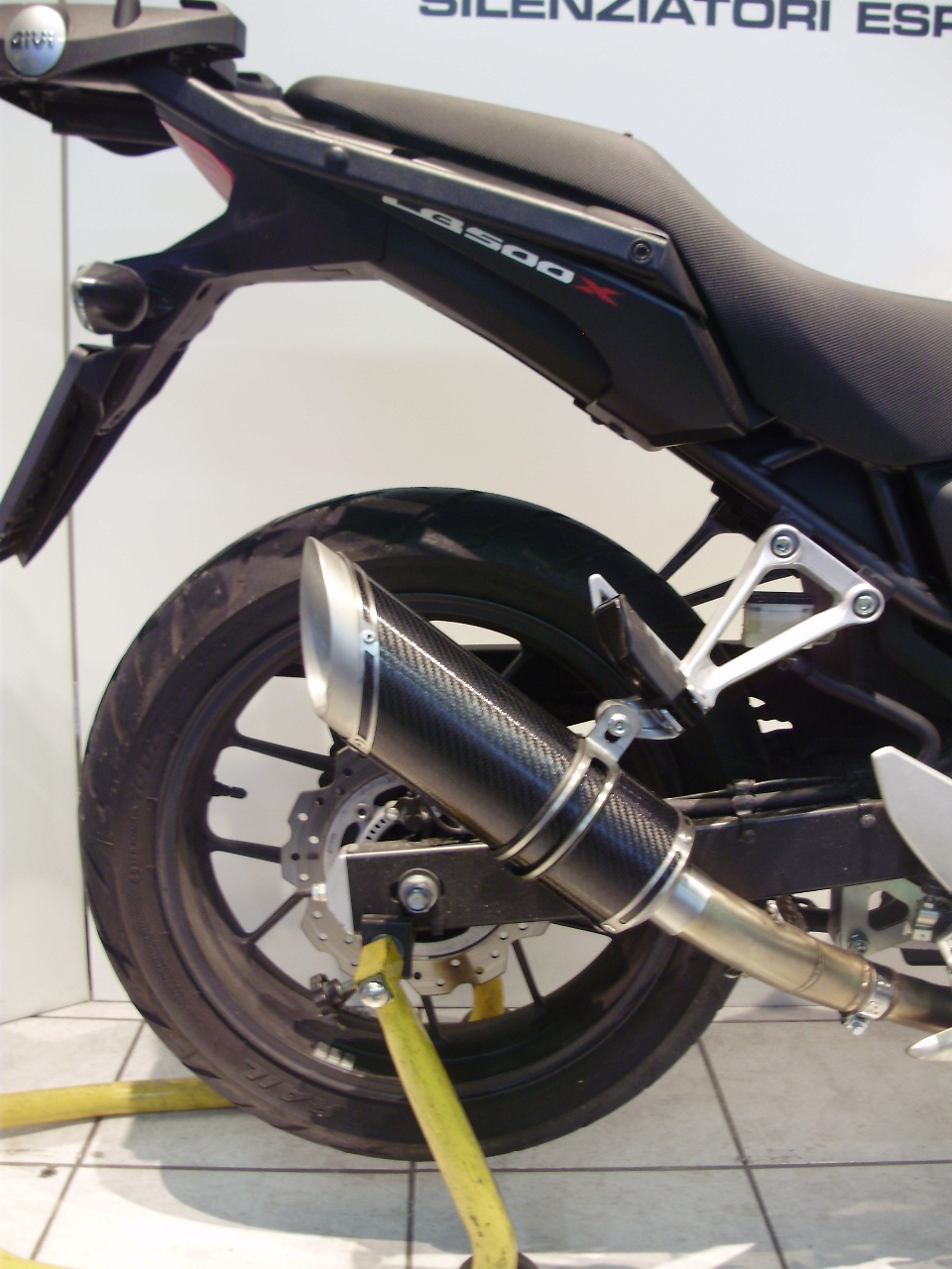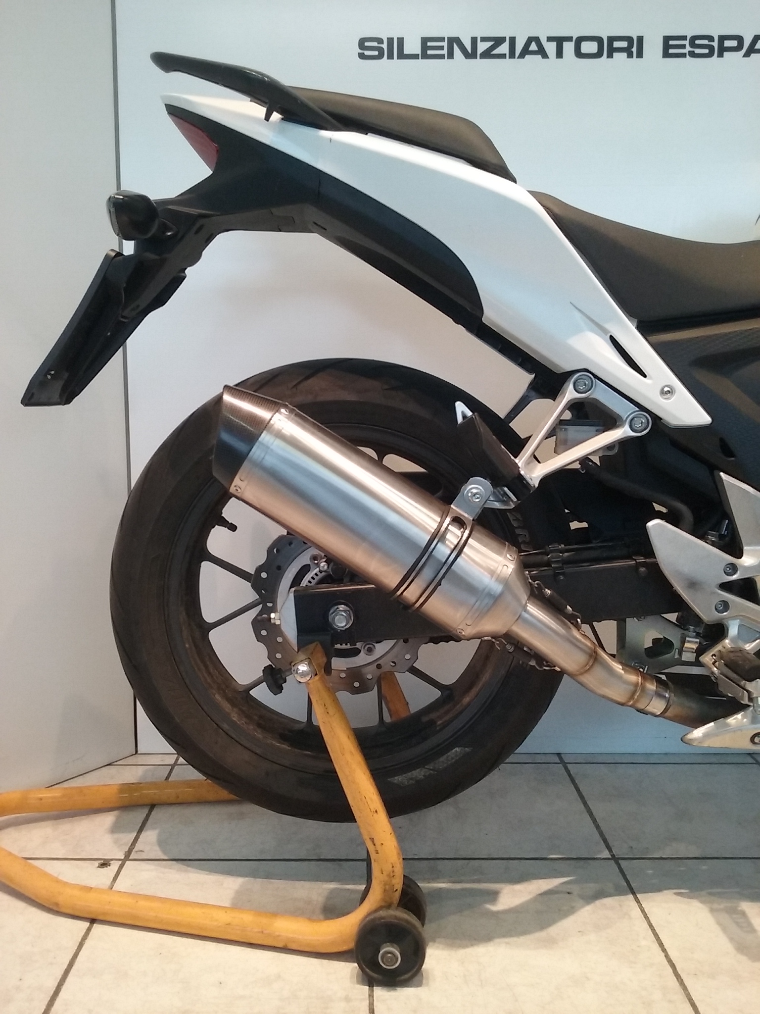 Sistema di scarico omologato con stampigliatura laser sul terminale, DB Killer e certificato cartaceo di omologazione.