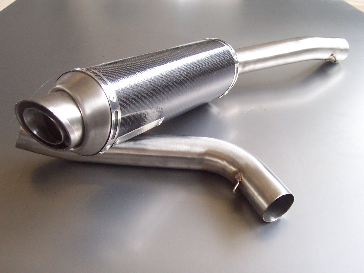 Sistema di scarico omologato con stampigliatura laser sul terminale, DB Killer e certificato cartaceo di omologazione.