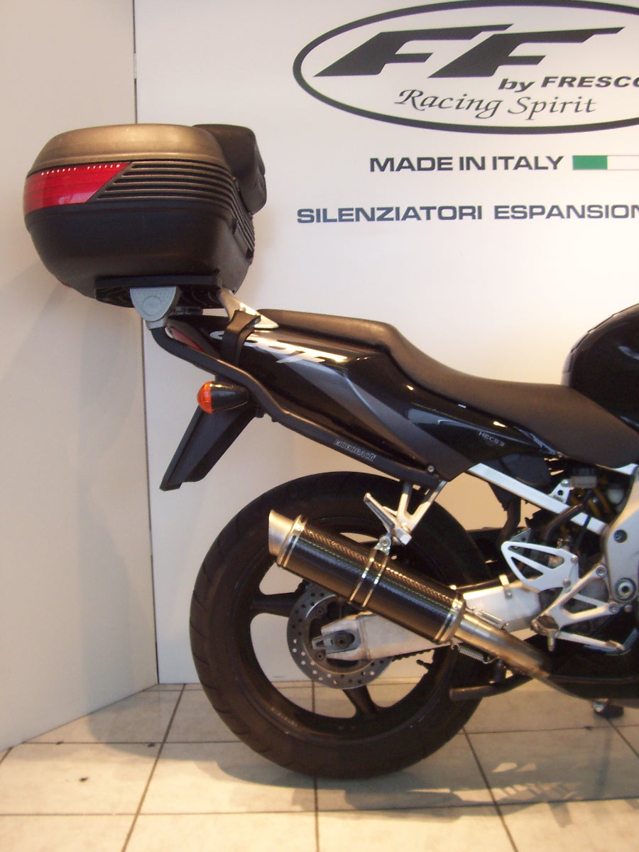 Sistema di scarico omologato con stampigliatura laser sul terminale, DB Killer e certificato cartaceo di omologazione.