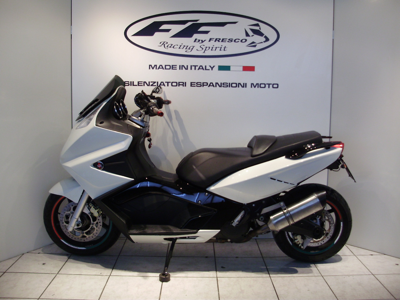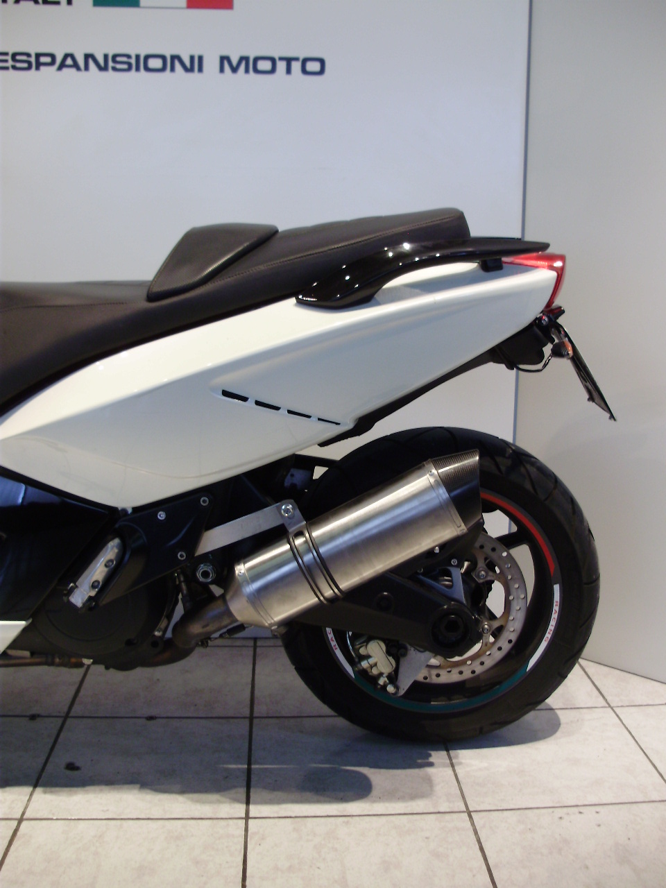 Sistema di scarico omologato con stampigliatura laser sul terminale, DB Killer e certificato cartaceo di omologazione.