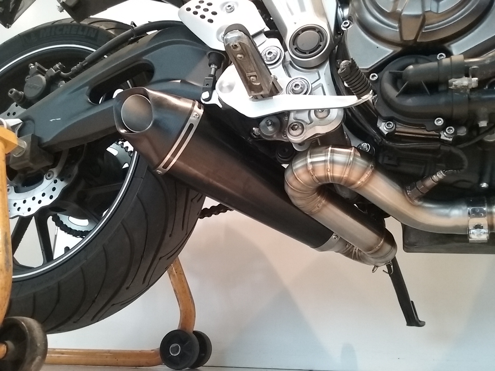 Sistema di scarico omologato con stampigliatura laser sul terminale, DB Killer e certificato cartaceo di omologazione.