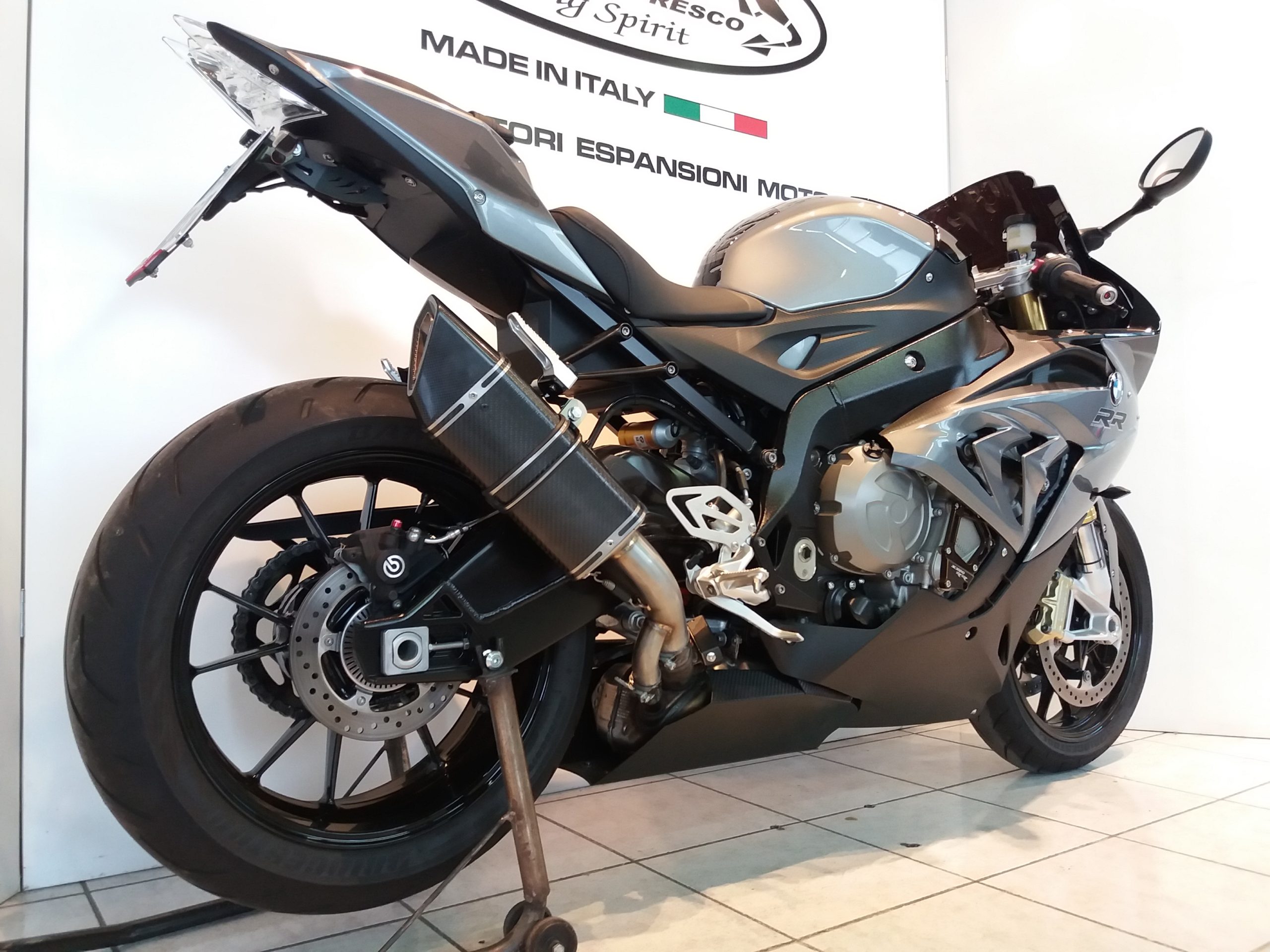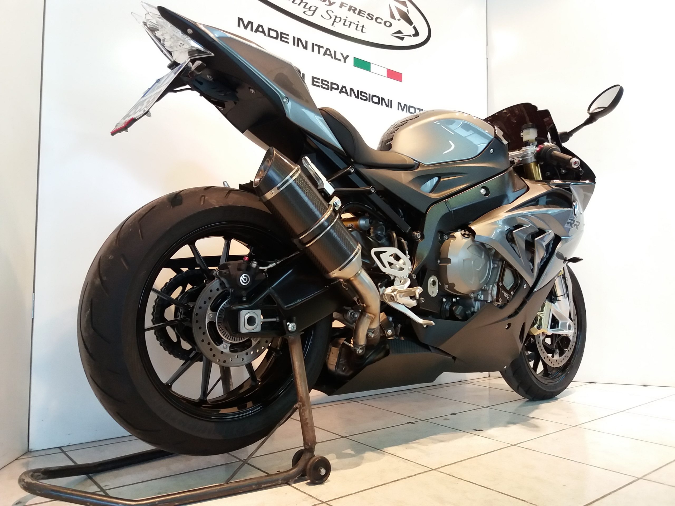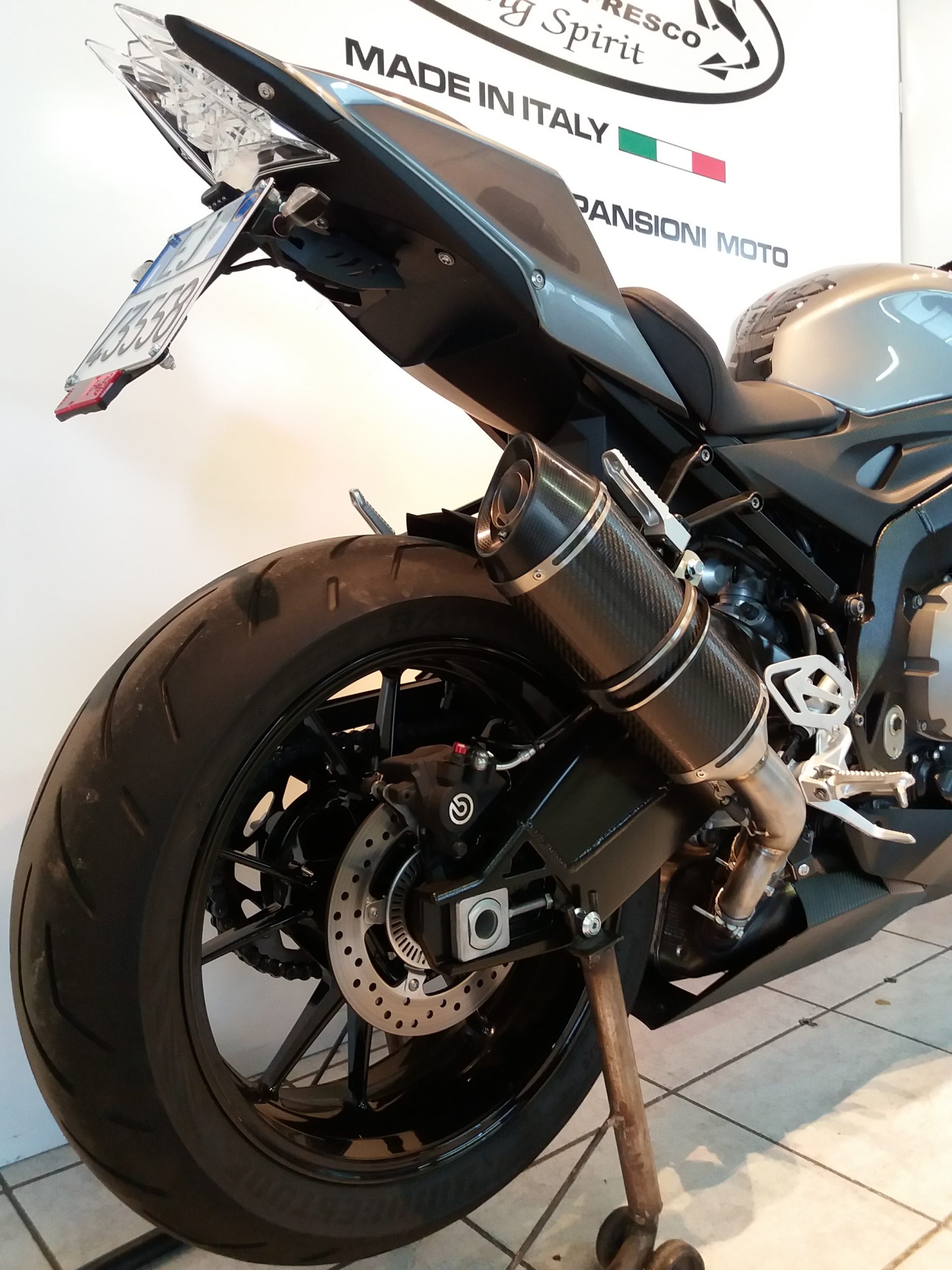 Sistema di scarico omologato con stampigliatura laser sul terminale, DB Killer e certificato cartaceo di omologazione.
