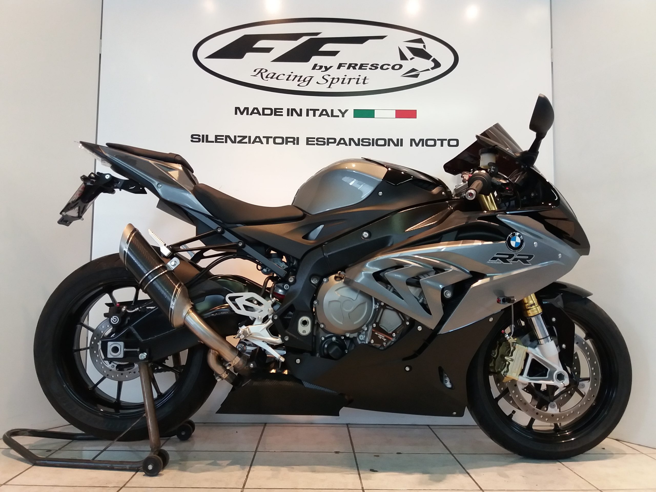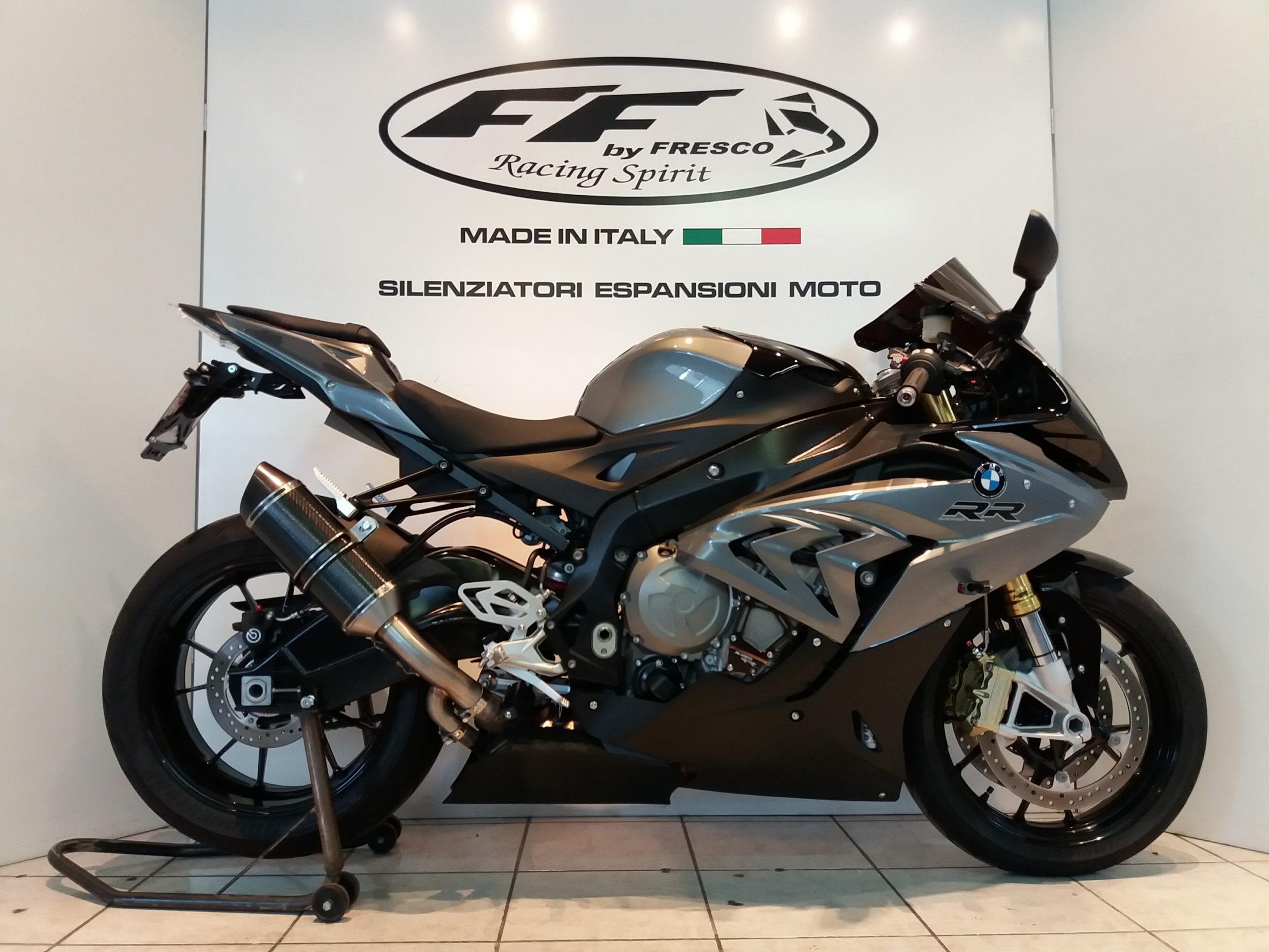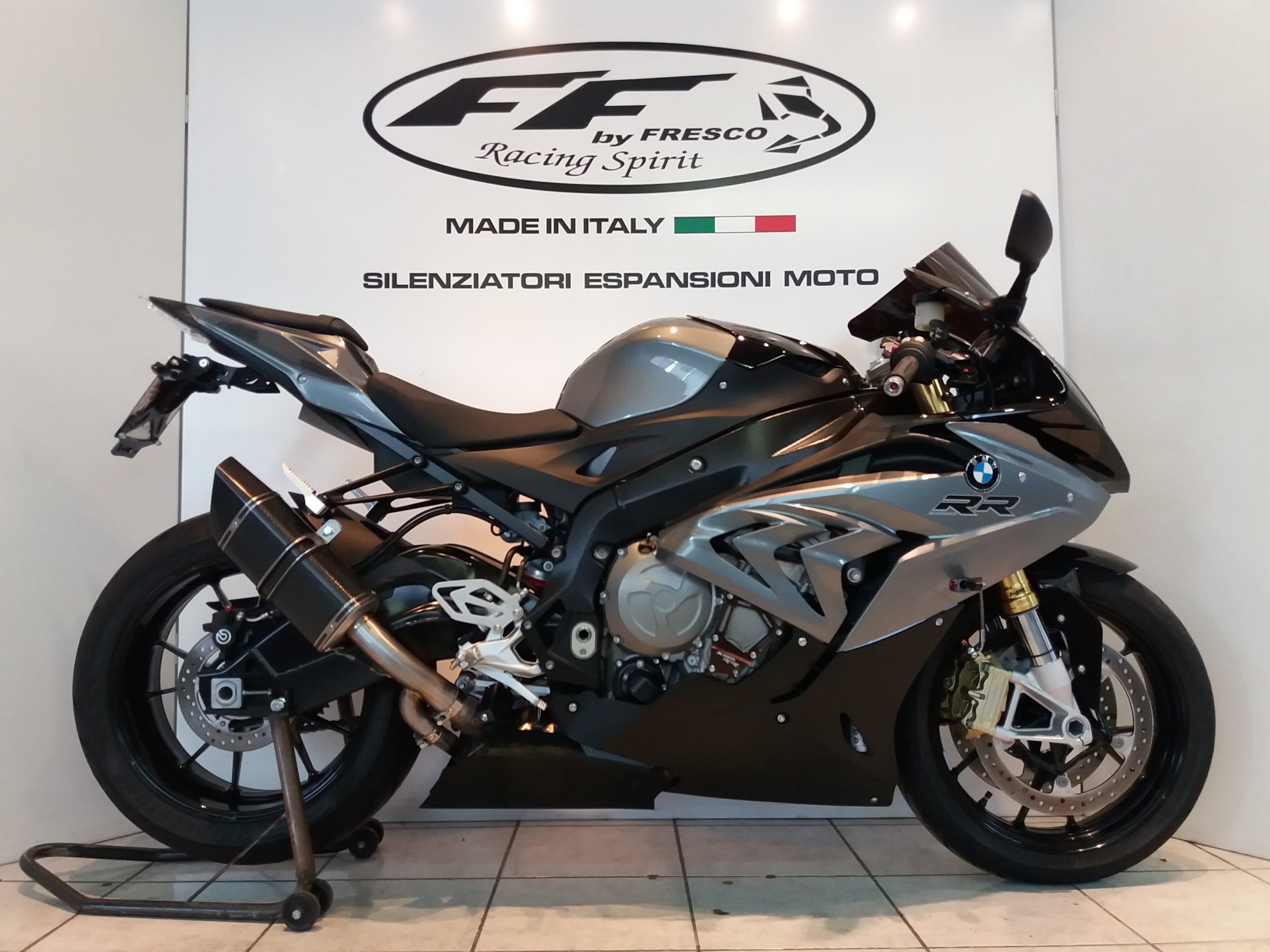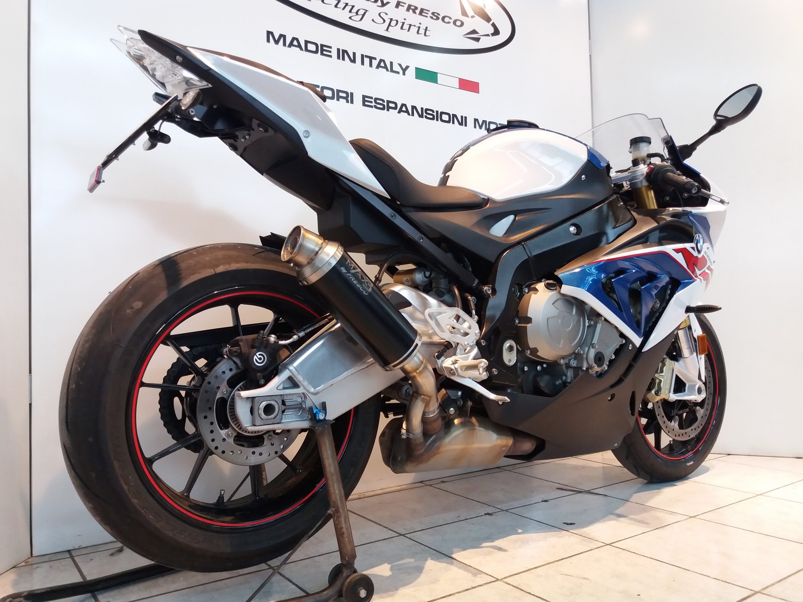 Sistema di scarico omologato con stampigliatura laser sul terminale, DB Killer e certificato cartaceo di omologazione.