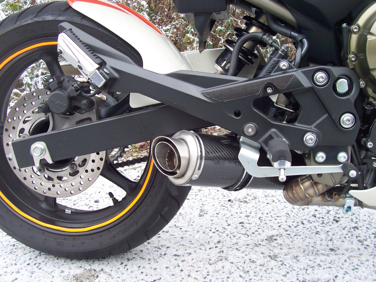 Sistema di scarico omologato con stampigliatura laser sul terminale, DB Killer e certificato cartaceo di omologazione.